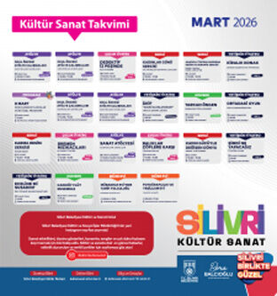 Silivri Belediyesi, kültür ve sanat etkinlikleri kapsamında Mart ayında birçok etkinlik düzenleyecek. 3-4 yaş çocuklar için Okul Öncesi Atölye Çalışmaları, 3 Mart Salı, 5 Mart Perşembe, 10 Mart Salı ve 12 Mart Perşembe günü saat 10.00 / 11.00’de Silivri Belediyesi Kültür Merkezi’nde olacak. 6 yaş ve üzeri Sanat Atölyesi, 18 Mart Çarşamba günü saat 13.00 / 14.00 / 15.00’te Kültür Sokağı 4’ncü salonda olacak.