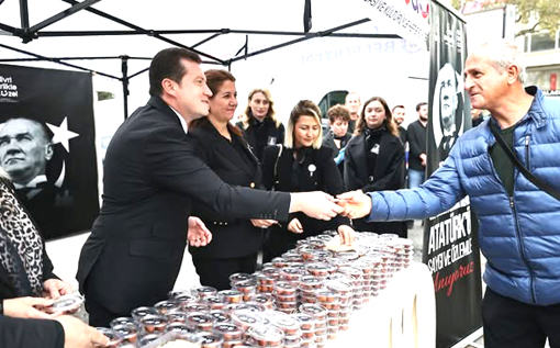 “Cumhuriyetimizin kurucusu Ulu Önderimiz Gazi Mustafa Kemal Atatürk’ün aramızdan ayrılışının 87. yıl dönümü anısına okunan Mevlid-i Şerif sonrası, Uğur Mumcu Meydanı’nda lokma hayrı gerçekleştirdik. Atamızın aziz hatırasını yüreğimizde yaşatıyor, sonsuz saygı, minnet ve rahmetle anıyoruz.”